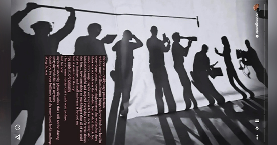 "Esta foi uma produção muito grande, com tantos seres humanos brilhantes que trabalharam tanto, tão duro, em todos os departamentos", escreveu ela, em seus stories do Instagram.
