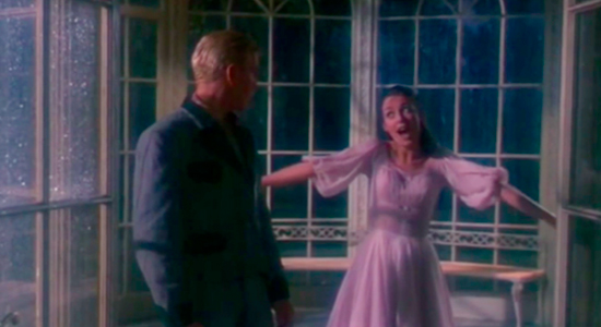 A cada tomada, contudo, o helicóptero e Andrews precisavam voltar à posição inicial para repetir a manobra. Quando a aeronave fazia a volta, as hélices produziam correntes de ar tão fortes, que Andrews era jogada no chão. A atriz comentou que foram necessários cerca de seis a sete tentativas para chegar ao resultado perfeito e brincou que, no final, já estava “cuspindo terra e feno”, de tanto que caiu no chão.