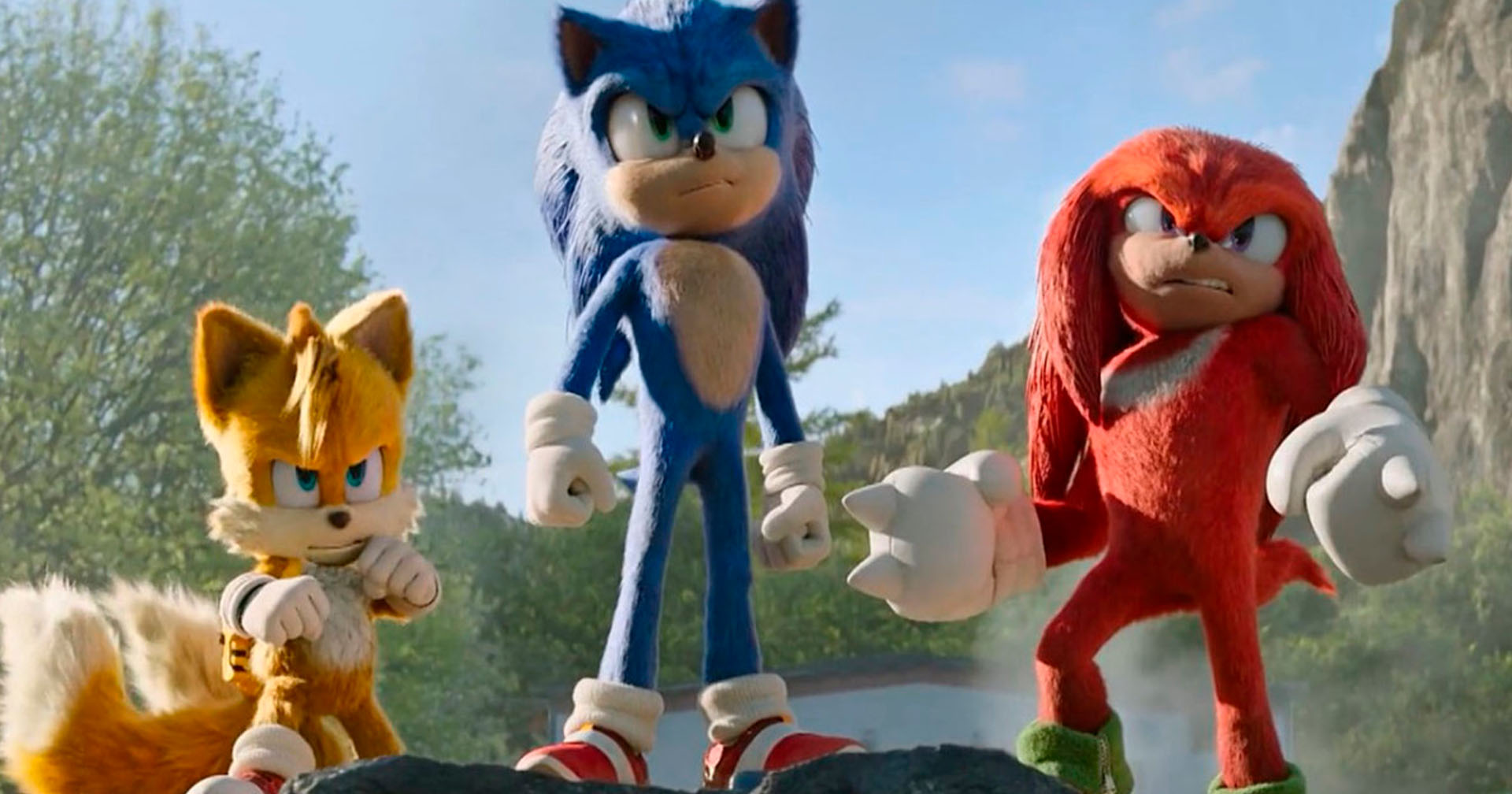 Na primeira, a Equipe Sonic, formada pelo personagem-título, Tails e Knuckles, aparece a bordo de um helicóptero, pronta para mais uma missão. Ao lado do trio, Krysten Ritter (‘Jessica Jones') surge brevemente - no longa, a atriz interpreta a Diretora Rockwell.