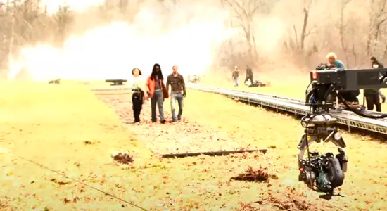 A solução foi filmar a sequência em uma clareira atrás do restaurante, perto de um estacionamento, com as árvores ao redor dando a sensação da floresta que a diretora queria.