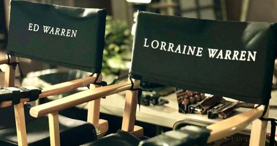 A imagem mostra duas cadeiras com os nomes dos protagonistas, os investigadores paranormais Ed Warren, interpretado por Patrick Wilson (‘Aquaman’), e Lorraine Warren, papel desempenhado por Vera Farmiga (‘O Menino do Pijama Listrado’). Recentemente, a dupla também foi clicada em outros flagras dos bastidores. Veja: