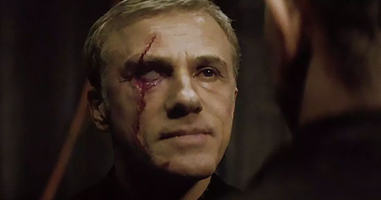 Essa interpretação do personagem traz algumas referências à vivida por Donald Pleasence - ele se coloca de forma calma e serena, não deixando de empregar a maldade e frieza marcantes do personagem. Logo em sua primeira aparição nos cinemas, o Blofeld de Waltz adquire uma cicatriz profunda no rosto, outra referência à versão de Pleasence.