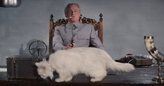 Como já dissemos aqui, a primeira aparição de Blofeld nas telonas aconteceu em Moscou Contra 007, segundo longa-metragem da saga original. Dois filmes mais tarde, em 1965, ele volta a atormentar Bond em 007 Contra a Chantagem Atômica.