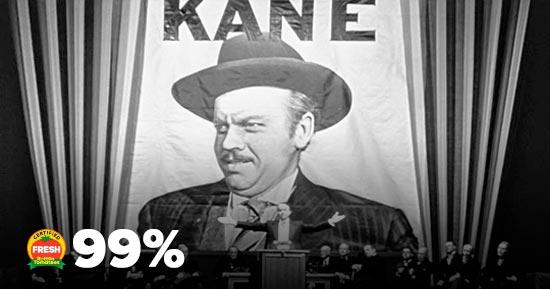 O clássico do cineasta Orson Welles ocupou por anos o primeiro lugar desta lista, mas um acontecimento recente fez com que ele passasse a figurar na quinta posição. Uma crítica negativa publicada no ano de seu lançamento foi encontrada e inserida na plataforma, o que fez com que o filme caísse de 100% para 99% de aprovação. O longa foi relembrado recentemente por conta do lançamento de Mank, filme que retrata a Era de Ouro de Hollywood e aborda questões sobre os bastidores de Cidadão Kane.