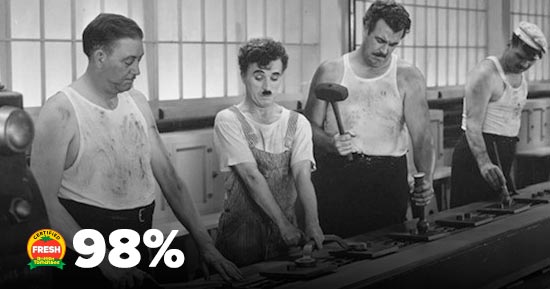Seria uma grande injustiça caso não encontrássemos nenhum filme estrelado por Charlie Chaplin nesta lista, certo? Tempos Modernos é uma crítica precisa aos meios de produção e ao sistema capitalista, e mesmo que tenha sido realizada na década de 1930, se mantém bastante atual. Embora seja considerado um dos melhores longas-metragens de Chaplin, foi completamente ignorado pelo Oscar à época - mas no Rotten Tomatoes, a justiça foi feita! Tempos Modernos se destaca como o segundo melhor filme da história do cinema, com 98% de críticas positivas.