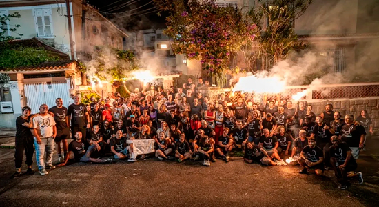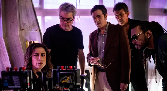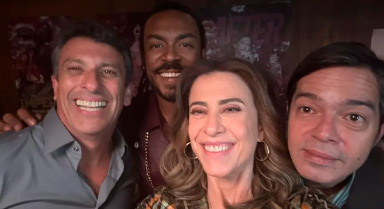 No registro, Milhem Cortaz, Bruno Mazzeo, Fernanda Torres e Jhordan Matheus aparecem já caracterizados como seus respectivos personagens.