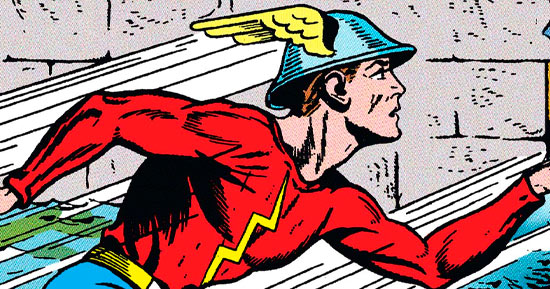 O mensageiro dos deuses era quase sempre retratado como se estivesse aguardando a largada de uma corrida, e Jay Garrick, o primeiro Flash, tinha asas no chapéu e nas botas, inspiradas nas características do mito ancestral.